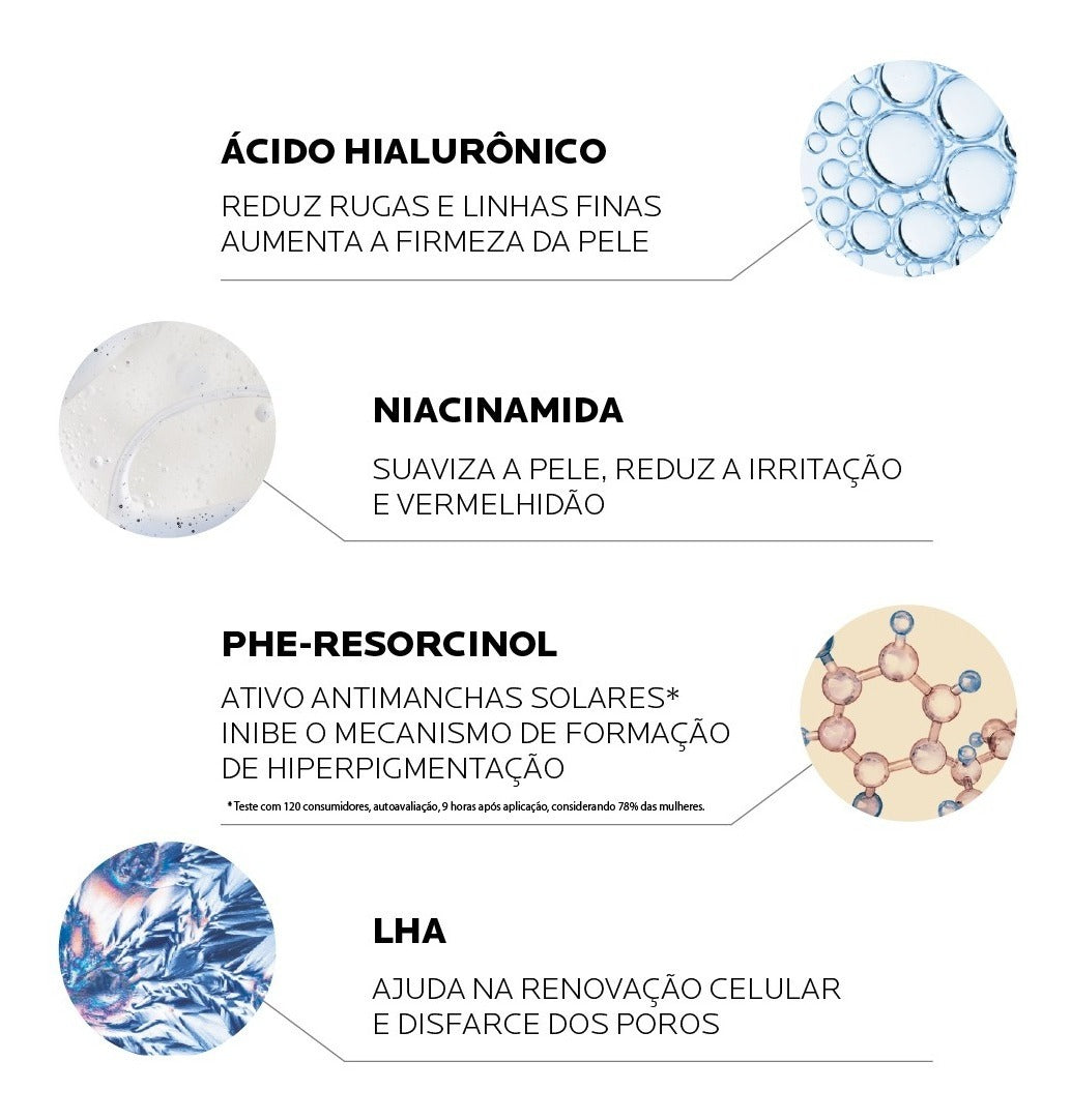LHA: ajuda na renovação celular e disfarce dos poros.