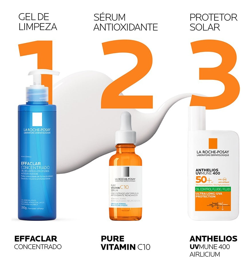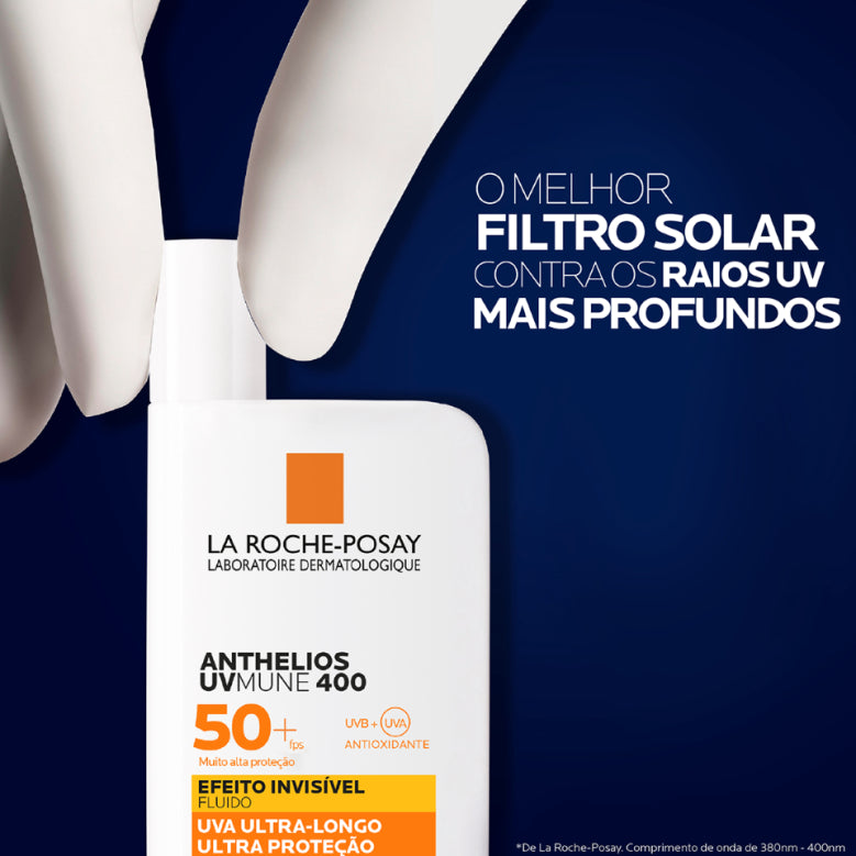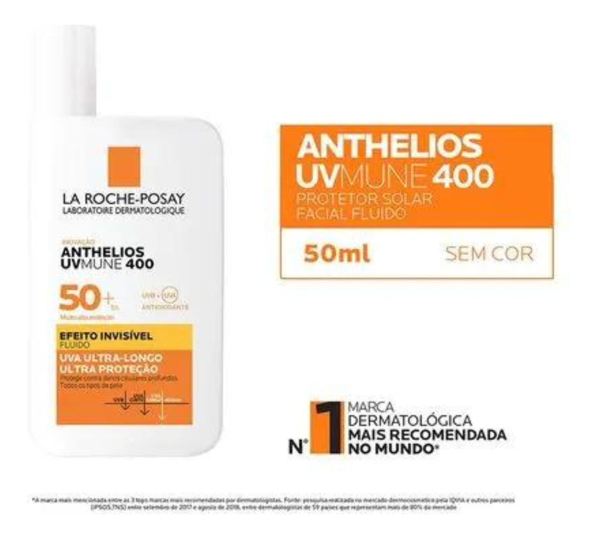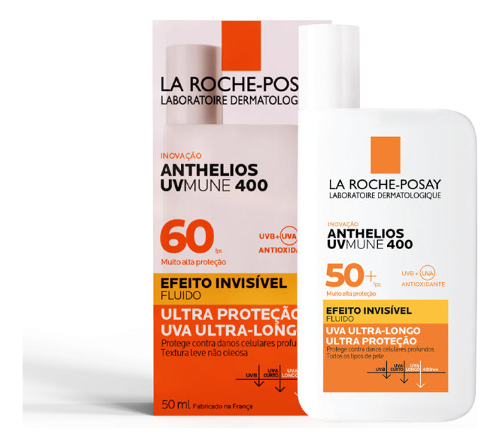 Protetor solar facial. La Roche-Posay Anthelios UVMune400 FPS60 é ideal para todos os tipos de pele, confere uma resistente proteção para o rosto. Sua textura sem oleosidade é super fluida e deixa a pele muito mais confortável, sem ficar manchada.