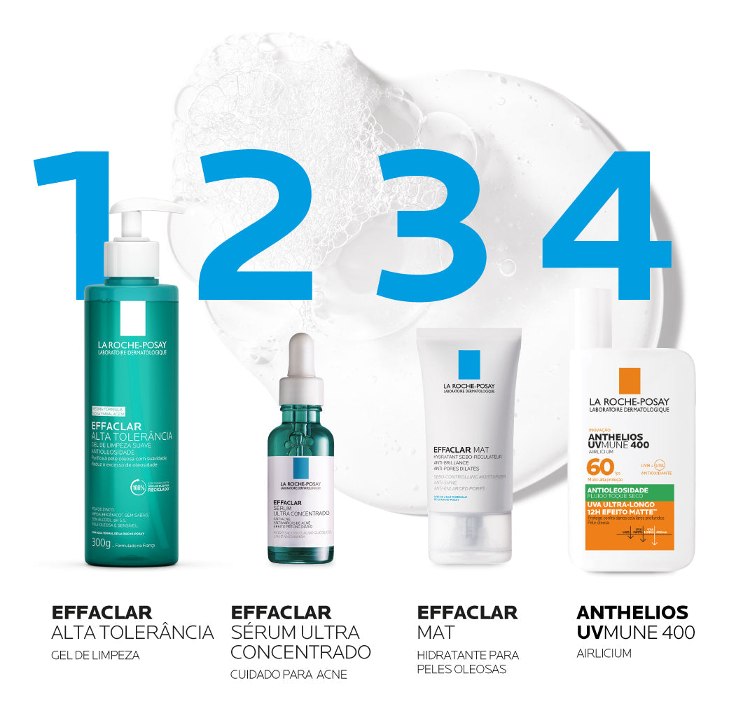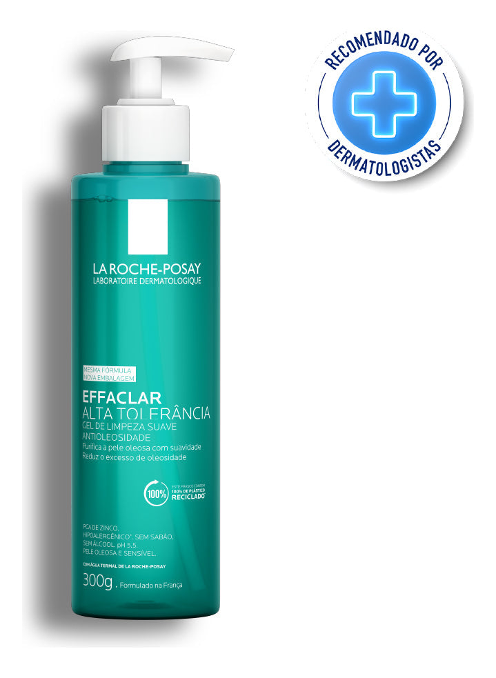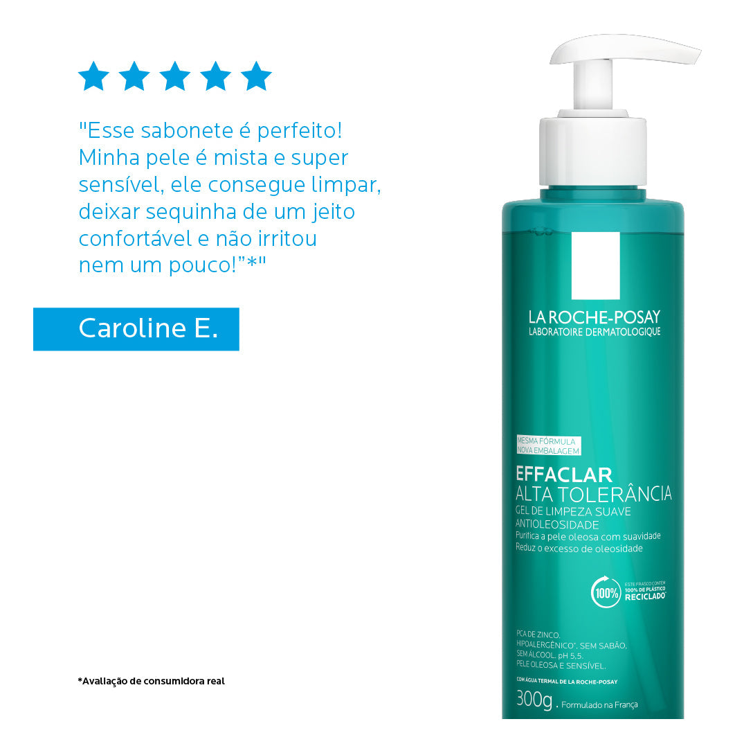 Gel de limpeza para peles mistas e oleosas. La Roche-Posay Effaclar Alta Tolerância controla a produção de sebo excessiva e limpa com suavidade.
