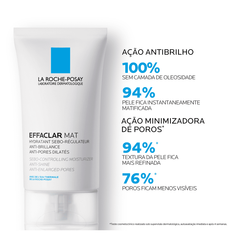 Hidratante facial para peles oleosas. La Roche-Posay Effaclar Mat hidrata, controla a oleosidade e deixa um acabamento matte.
